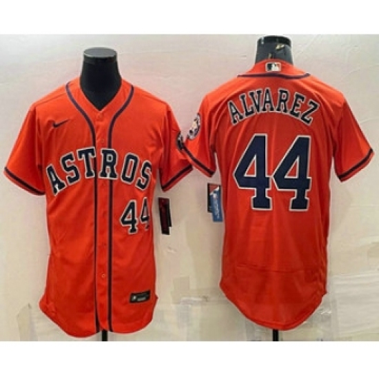 Men's Houston Astros #44 Yordan Alvarez Number Orange Stitched MLB Flex Base Nike Jersey