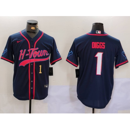 Men's Houston Texans #1 Stefon Diggs Navy With Cool Base Stitched Baseball Jerseys
