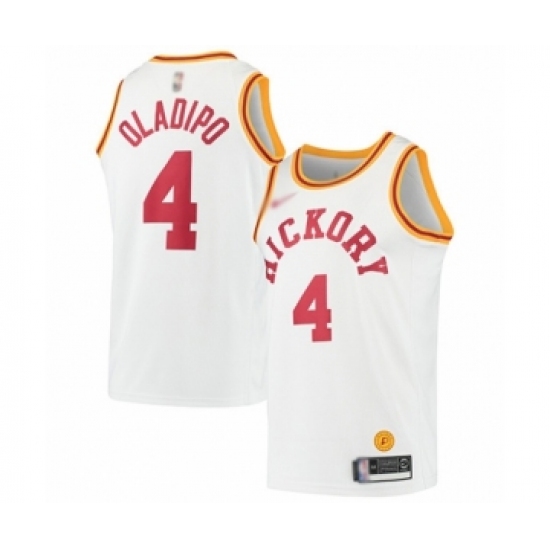 >Men's Indiana Pacers #4 Victor Oladipo Authentic White Hardwood Classics Basketball Jersey