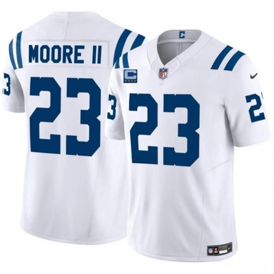 >Men's Indianapolis Colts #23 Kenny Moore II White 2025 F.U.S.E. With 4-Star C Vapor Limited Football Stitched Jersey