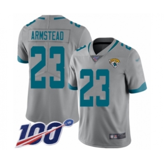 >Men's Jacksonville Jaguars #23 Ryquell Armstead Silver Inverted Legend Limited 100th Season Football Jersey