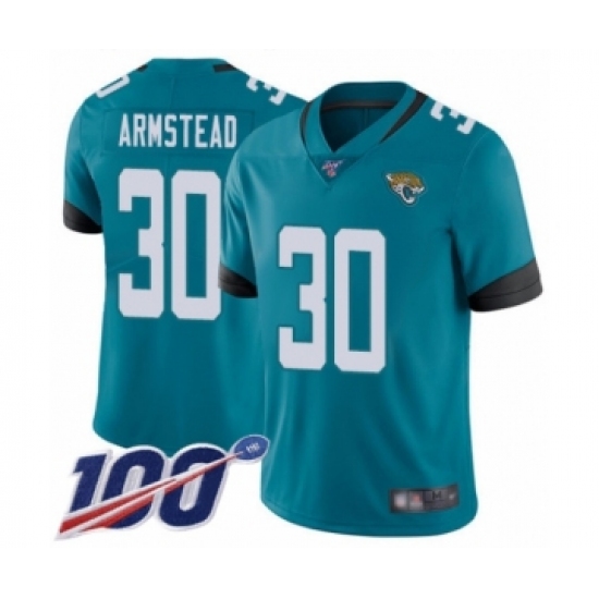 >Men's Jacksonville Jaguars #30 Ryquell Armstead Teal Green Alternate Vapor Untouchable Limited Player 100th Season Football Jersey