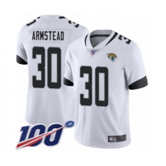 >Men's Jacksonville Jaguars #30 Ryquell Armstead White Vapor Untouchable Limited Player 100th Season Football Jersey