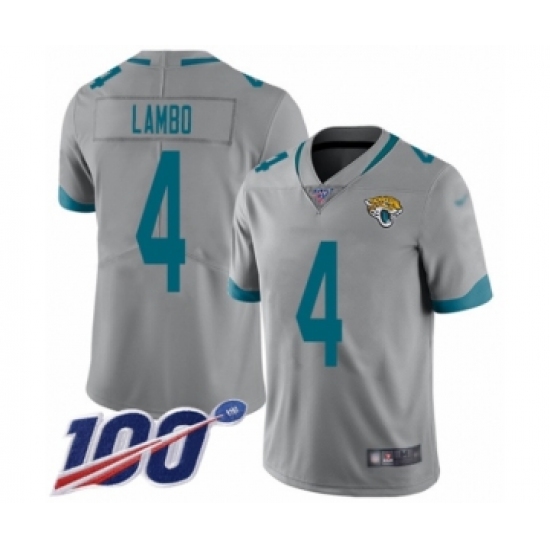 Men's Jacksonville Jaguars #4 Josh Lambo Silver Inverted Legend Limited 100th Season Football Jersey