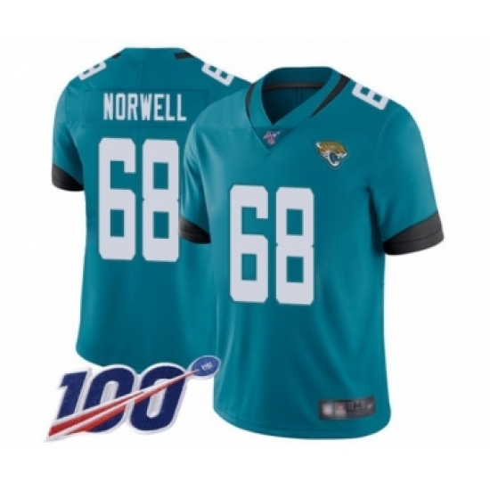 Men's Jacksonville Jaguars #68 Andrew Norwell Teal Green Alternate Vapor Untouchable Limited Player 100th Season Football Jersey