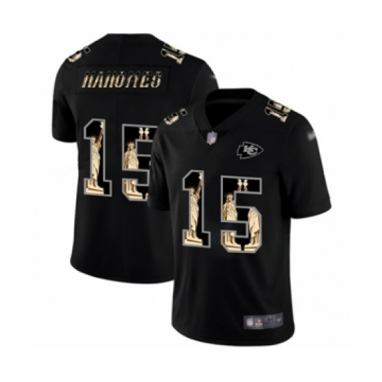 >Men's Kansas City Chiefs #15 Patrick Mahomes II Limited Black Statue of Liberty Football Jersey