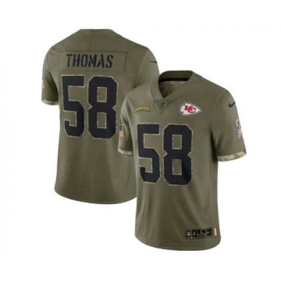 >Men's Kansas City Chiefs #58 Derrick Thomas 2022 Olive Salute To Service Limited Stitched Jersey