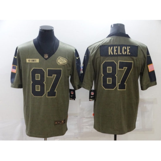 Men's Kansas City Chiefs #87 Travis Kelce Nike Olive 2021 Salute To Service Limited Player Jersey