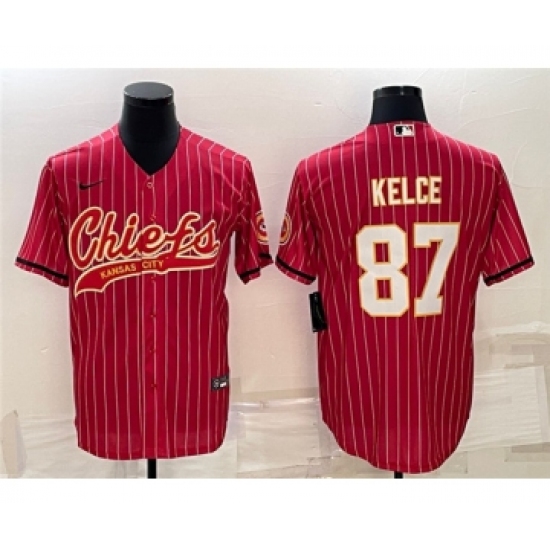 Men's Kansas City Chiefs #87 Travis Kelce Red With Patch Cool Base Stitched Baseball Jersey