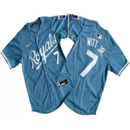 Men's Kansas City Royals #7 Bobby Witt Jr Number Light Blue Cool Base Stitched Jerseys