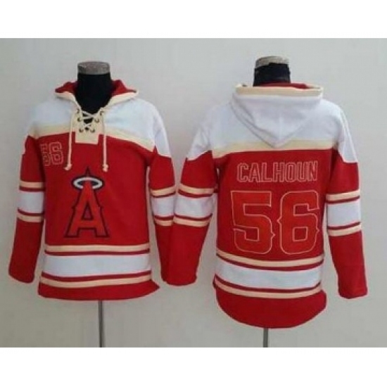 >Men's LA Angels Of Anaheim #56 Kole Calhoun Red Baseball MLB Hoodie