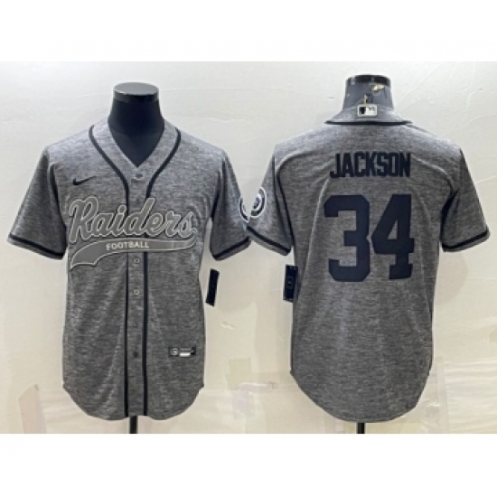 >Men's Las Vegas Raiders #34 Bo Jackson Gray With Patch Cool Base Stitched Baseball Jersey