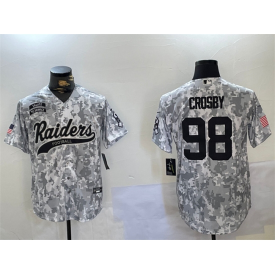 >Men's Las Vegas Raiders #98 Maxx Crosby 2024 Arctic Camo Salute To Service Stitched Baseball Jersey