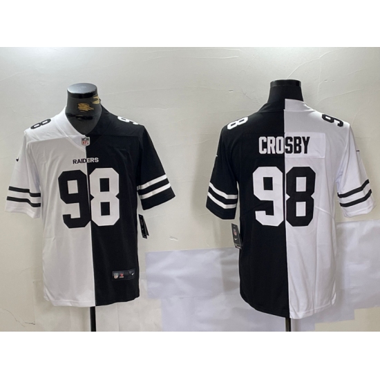 Men's Las Vegas Raiders #98 Maxx Crosby Black White 2024 F.U.S.E With Nevada Silver Stat And 65th Anniversary 3-Star C Stitched Football Jersey