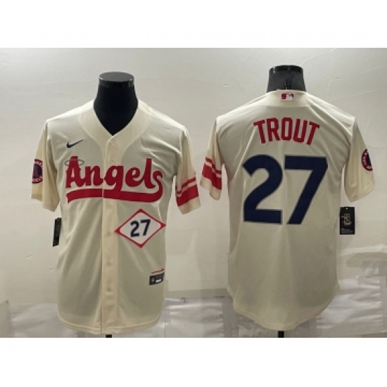 Men's Los Angeles Angels #27 Mike Trout Number Cream 2022 City Connect Cool Base Stitched Jersey