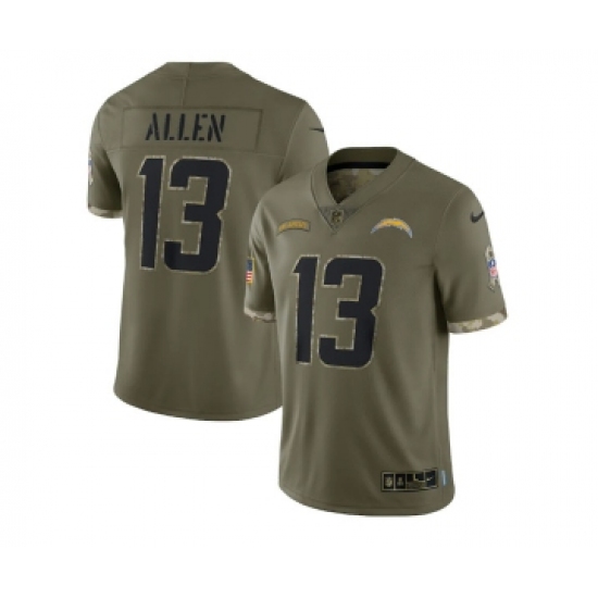 >Men's Los Angeles Chargers #13 Keenan Allen 2022 Olive Salute To Service Limited Stitched Jersey