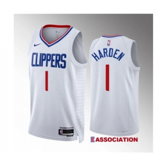 Men's Los Angeles Clippers #1 James Harden White Association Edition Stitched Jersey