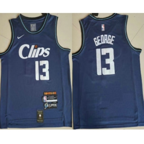 Men's Los Angeles Clippers #13 Paul George Blue 2024 City Edition Swingman Sponsor Stitched Jersey