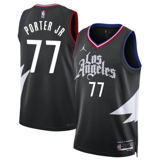 Men's Los Angeles Clippers #77 Kevin Porter Jr Black Statement Edition Stitched Jersey