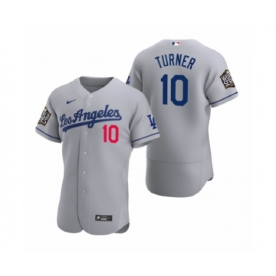 Men's Los Angeles Dodgers #10 Justin Turner Nike Gray 2020 World Series Authentic Road Jersey
