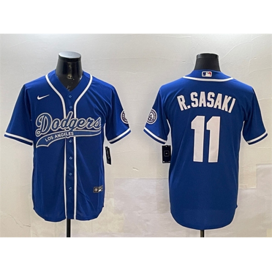 Men's Los Angeles Dodgers #11 Roki Sasaki Royal With Cool Base Stitched Baseball Jersey