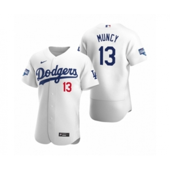 >Men's Los Angeles Dodgers #13 Max Muncy White 2020 World Series Champions Authentic Jersey