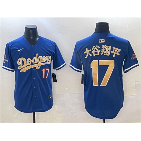 Men's Los Angeles Dodgers #17 大谷翔平 Royal 2025 Gold Collection Limited Stitched Baseball Jersey