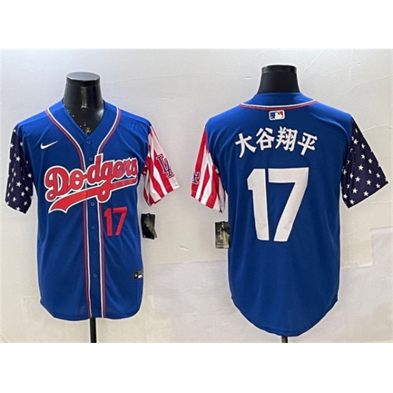 >Men's Los Angeles Dodgers #17 大谷翔平 Royal Limited Stitched Baseball Jersey
