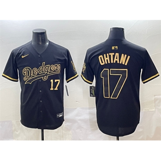 Men's Los Angeles Dodgers #17 Shohei Ohtani Black Gold Limited Stitched Jersey