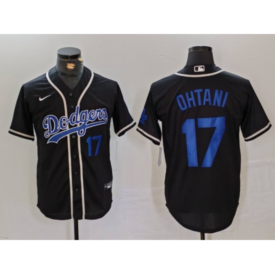 >Men's Los Angeles Dodgers #17 Shohei Ohtani Number Black Cool Base With Stitched Baseball Jerseys