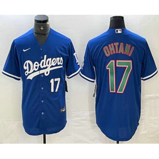 >Men's Los Angeles Dodgers #17 Shohei Ohtani Number Blue Green Stitched Cool Base Nike Jerseys
