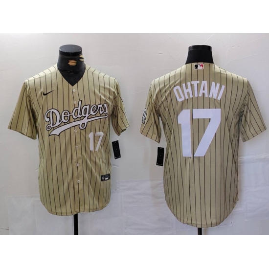 Men's Los Angeles Dodgers #17 Shohei Ohtani Number Cream Pinstripe Cool Base Stitched Jersey