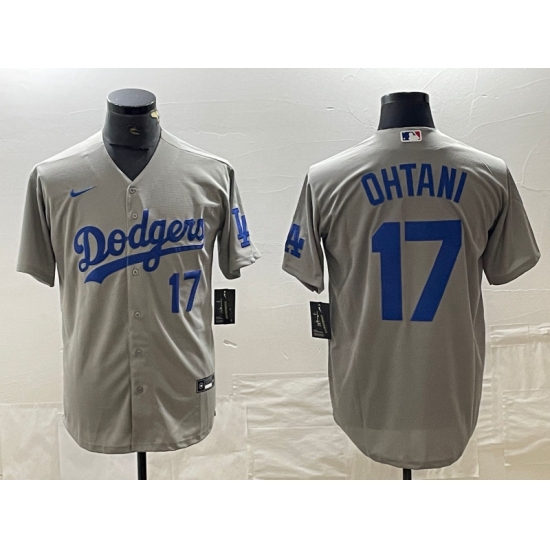 Men's Los Angeles Dodgers #17 Shohei Ohtani Number Grey Cool Base Stitched Jersey