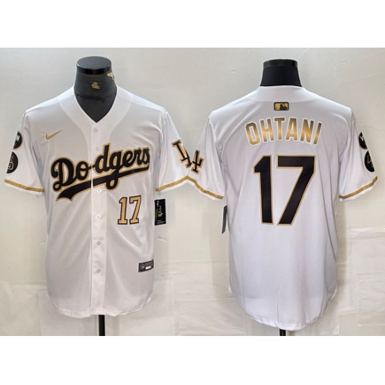 Men's Los Angeles Dodgers #17 Shohei Ohtani Number White Gold Fashion Stitched Cool Base Limited Jersey