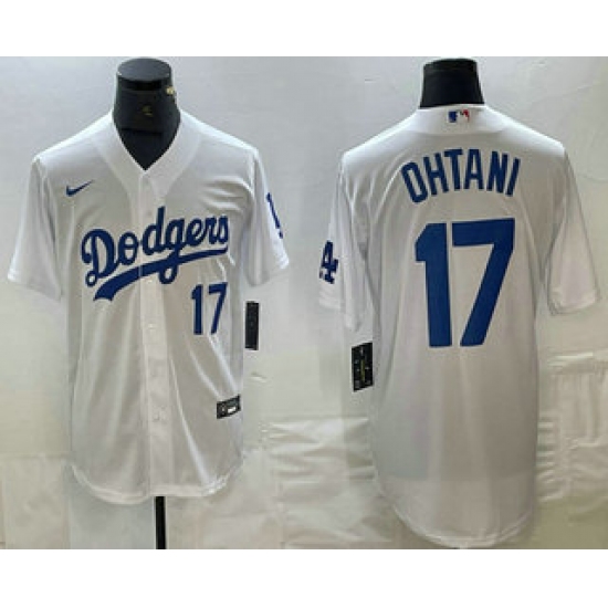 >Men's Los Angeles Dodgers #17 Shohei Ohtani Number White Stitched Cool Base Nike Jersey