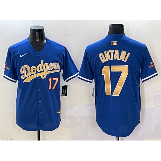 Men's Los Angeles Dodgers #17 Shohei Ohtani Royal 2025 Gold Collection Limited Stitched Baseball Jersey