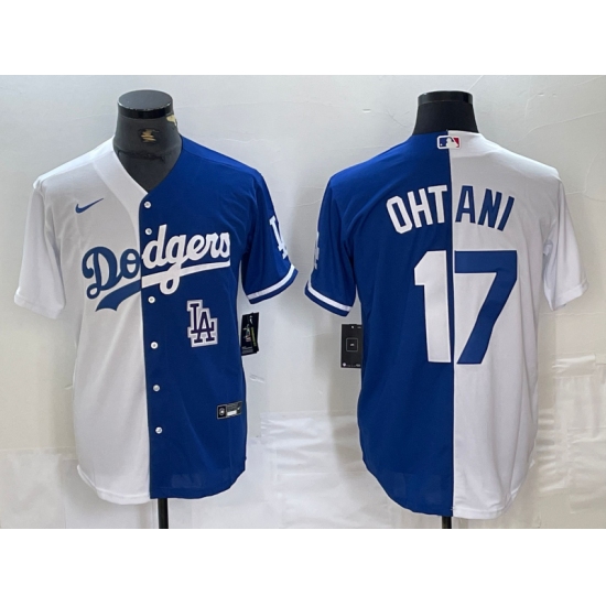 Men's Los Angeles Dodgers #17 Shohei Ohtani White Blue Two Tone Stitched Baseball Jersey