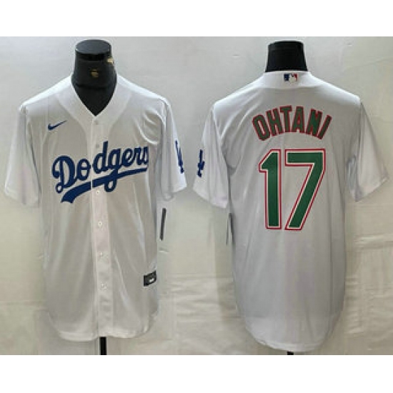 Men's Los Angeles Dodgers #17 Shohei Ohtani White Green Stitched Cool Base Nike Jerseys
