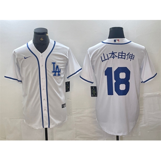 Men's Los Angeles Dodgers #18 山本由伸 White Cool Base Stitched Baseball Jersey