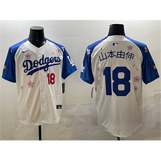 >Men's Los Angeles Dodgers #18 山本由伸 White Royal 2025 Tokyo Series Limited Stitched Baseball Jersey