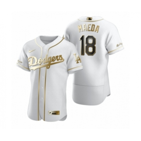 >Men's Los Angeles Dodgers #18 Kenta Maeda Nike White Authentic Golden Edition Jersey
