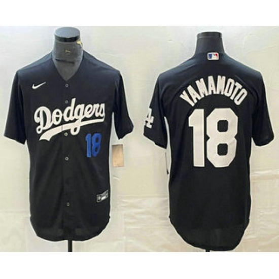 Men's Los Angeles Dodgers #18 Yoshinobu Yamamoto Navy Cool Base Stitched Jersey