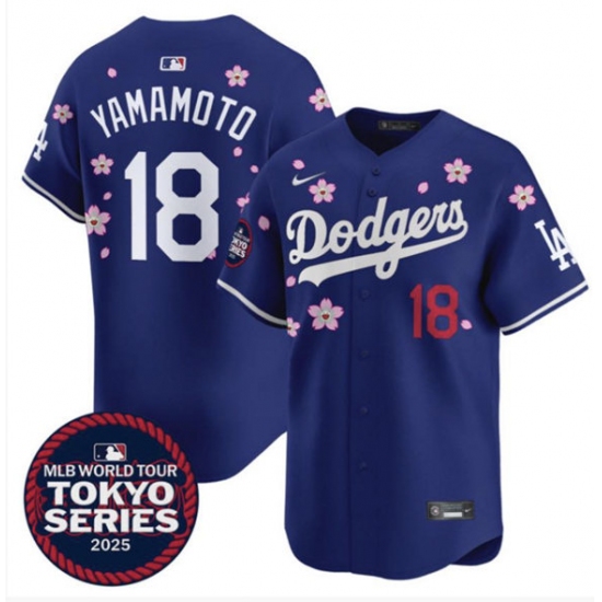 Men's Los Angeles Dodgers #18 Yoshinobu Yamamoto Royal 2025 Tokyo Series Limited Stitched Baseball Jersey