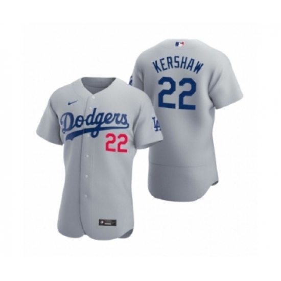 >Men's Los Angeles Dodgers #22 Clayton Kershaw Nike Gray Authentic 2020 Alternate Jersey