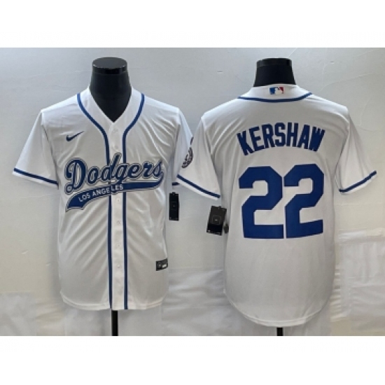 >Men's Los Angeles Dodgers #22 Clayton Kershaw White Cool Base Stitched Baseball Jersey1