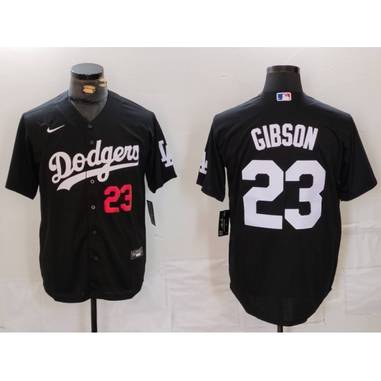 Men's Los Angeles Dodgers #23 Kirk Gibson Number Black Cool Base Stitched Jersey