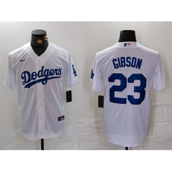 >Men's Los Angeles Dodgers #23 Kirk Gibson White Cool Base Stitched Baseball Jersey