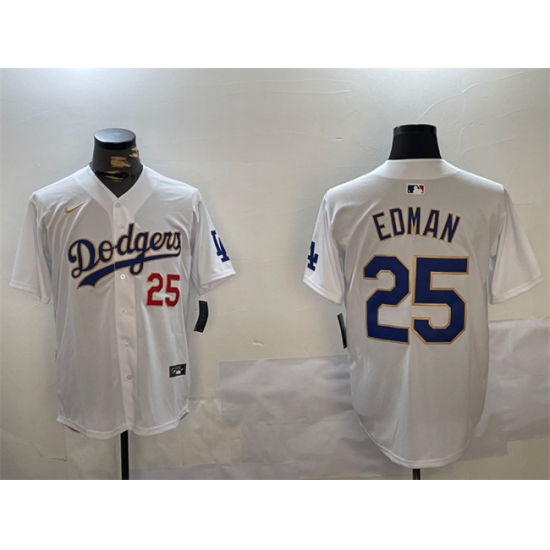>Men's Los Angeles Dodgers #25 Tommy Edman White Gold Home Limited Stitched Baseball Jersey