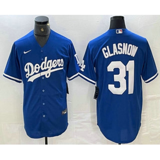 >Men's Los Angeles Dodgers #31 Tyler Glasnow Blue Stitched Cool Base Nike Jersey