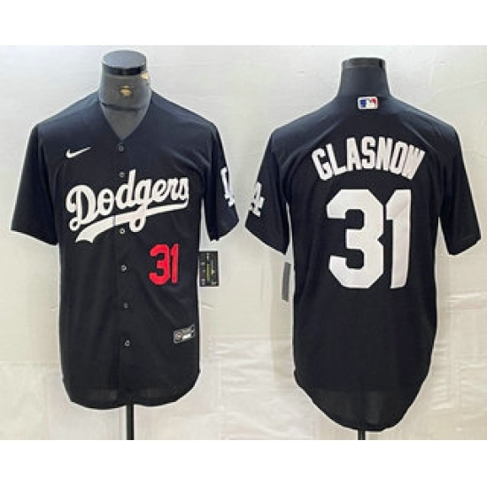 Men's Los Angeles Dodgers #31 Tyler Glasnow Number Black Turn Back The Clock Stitched Cool Base Jersey
